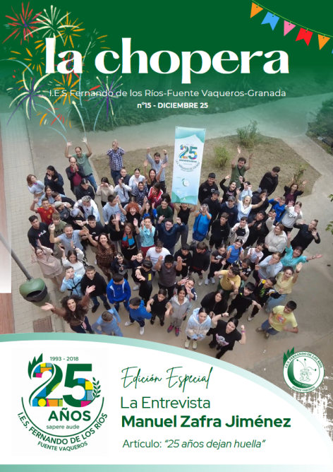 ¡No te lo pierdas! Este nuevo número de La Chopera es una edición especial por nuestro XXV Aniversario, en el que entre otras muchas cosas, podremos leer una entrevista al primer director del centro, Don Manuel Zafra Jiménez. ¡Animaos a la lectura haciendo clic AQUÍ!
