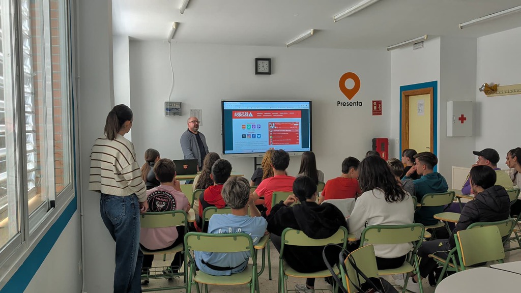 El prestigioso podcaster Manuel Luis Mena, director de A Link to the Podcast, ha visitado el IES Fernando de los Ríos para impartir una charla muy práctica a alumnado y profesorado con la finalidad de enseñarnos cómo podemos utilizar nuestra nueva mesa de podcasts del Aula del Futuro. Qué es un podcast, qué tecnologías necesitamos, cómo se procede a la grabación y a la edición fueron preguntas que Manuel Luis respondió ante la atención del público.