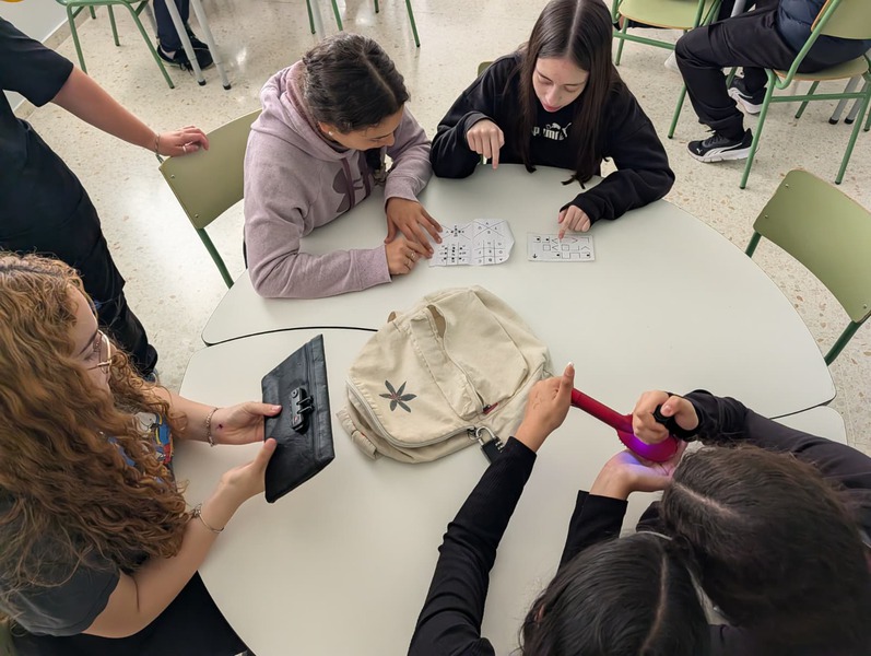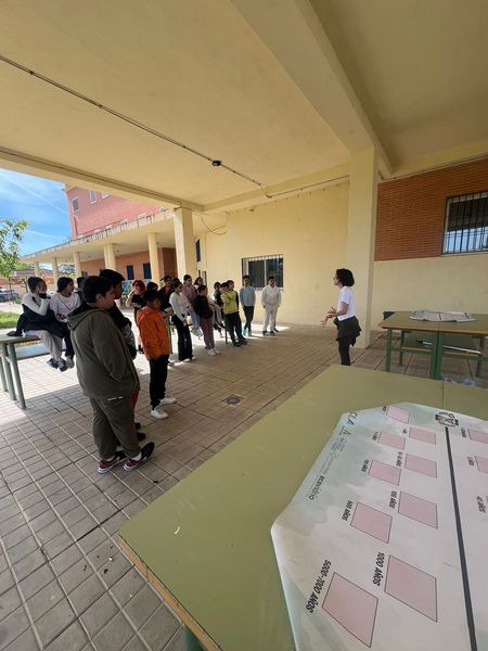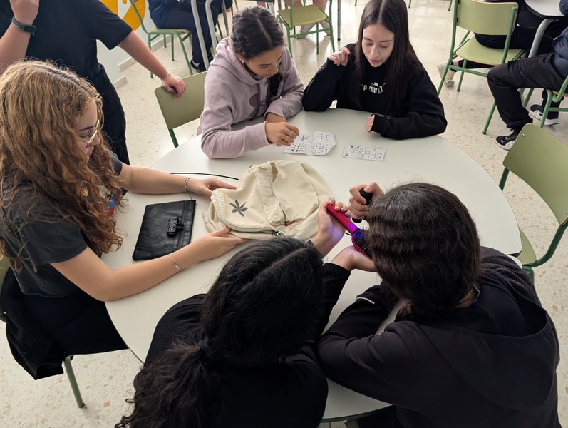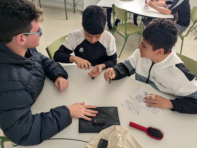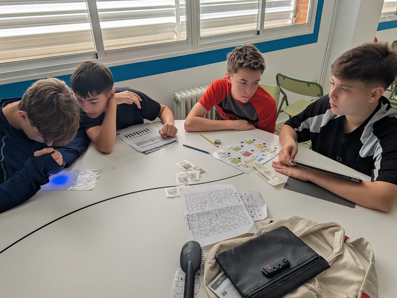 El alumnado, dividido en 3 grupos, tenía que buscar por distintas zonas del instituto unos tableros de símbolos escondidos: Mirar con atención; Memorizar; Correr hasta clase; Transcribir los símbolos exactamente igual; Y colocarlos en el mismo orden.
