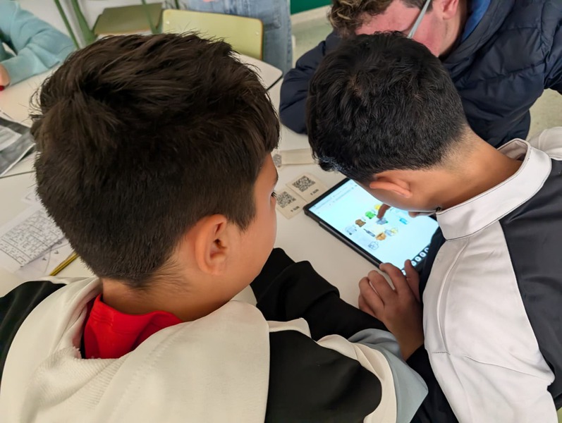 Pero además lo hemos hecho en GRUPOS INTERACTIVOS. Han venido alumnos de 4º ESO a ayudar como capitanes de cada equipo, guiando, animando y coordinando el trabajo.